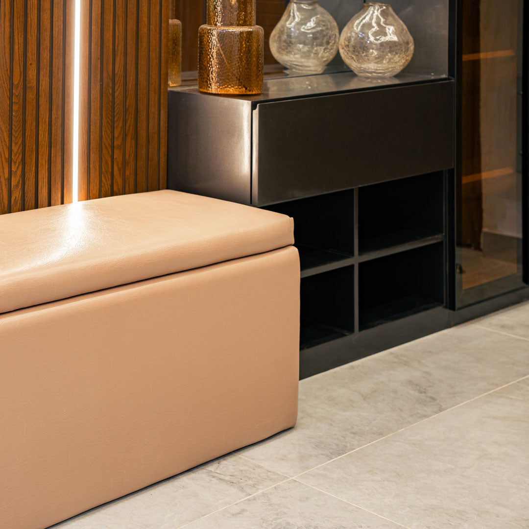 Crafted from high-quality leather, our Leather Banquet offers both elegant style and functional storage. With a convenient opening design, this banquet is perfect for storing all your essentials while adding a touch of sophistication to your space.